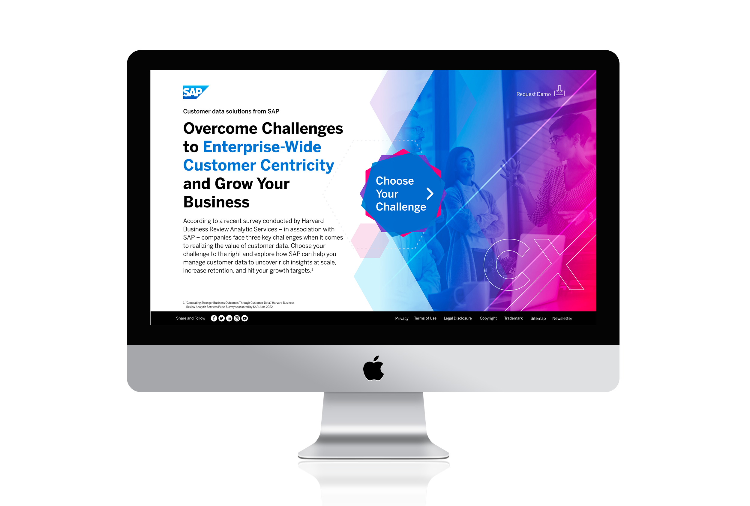 An interactive non-scrolling HTML experience highlighting customer data solutions by SAP.